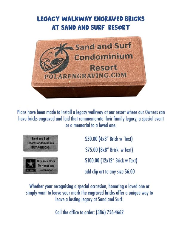 improved Property in Daytona Beach Shores! We’ve also ordered legacy bricks that will be proudly displayed on the property soon—a lasting tribute to our community. Thank you again for your support through these challenging times. I know we’re all eagerly counting down the days until your next beach week! Here’s to many more great years ahead at Sand and Surf!